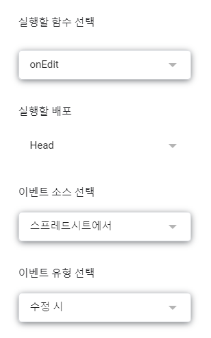 4. 스프레드시트가 수정될 때 함수가 실행하게 설정한다.